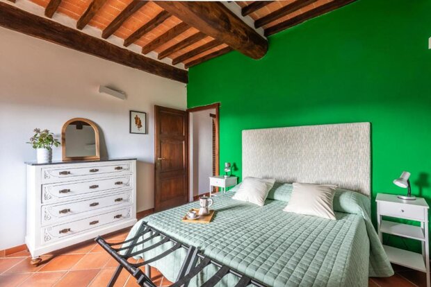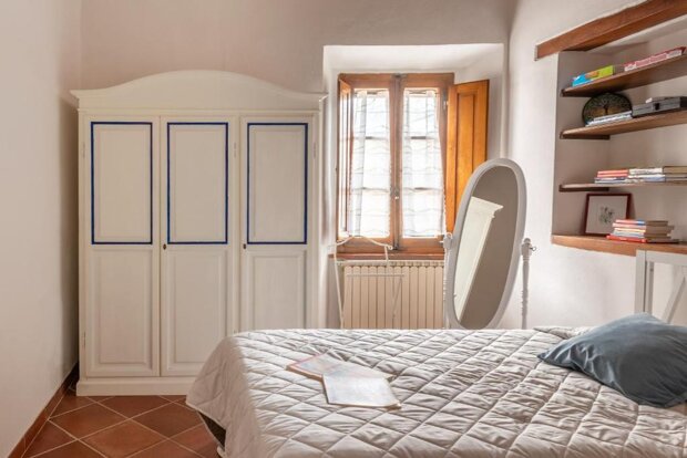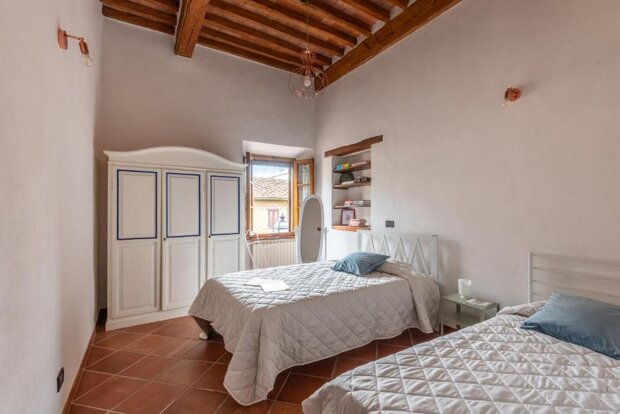 L’immobile è stato recentemente ristrutturato e conserva intatto il carattere tipico toscano: tutti gli ambienti sono impreziositi da travi a vista, mentre il soggiorno si distingue per un soffitto a cassettoni originale del 1700, elemento di grande fascino e unicità. Gli arredi combinano con equilibrio stile moderno e vintage, creando un’atmosfera rustica ma accogliente.